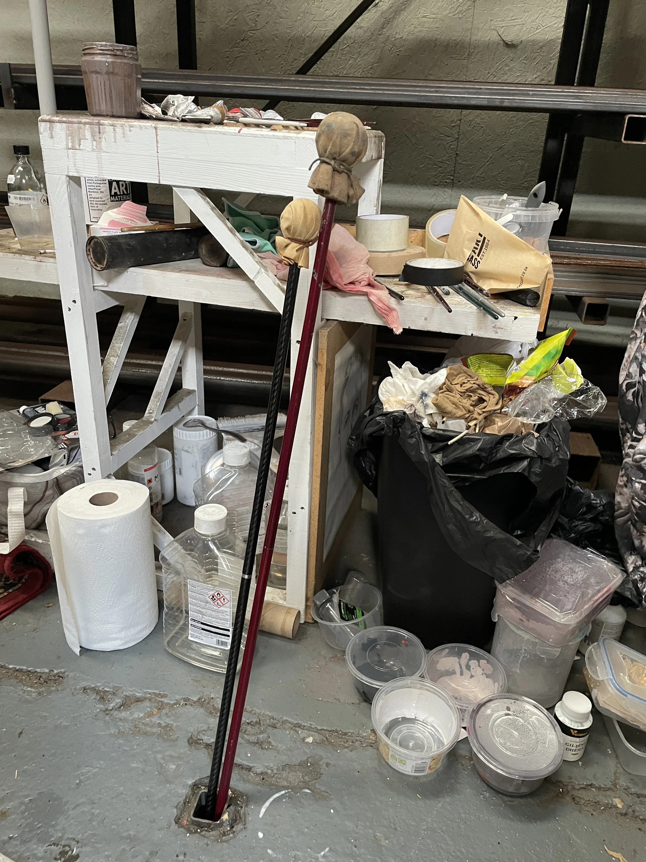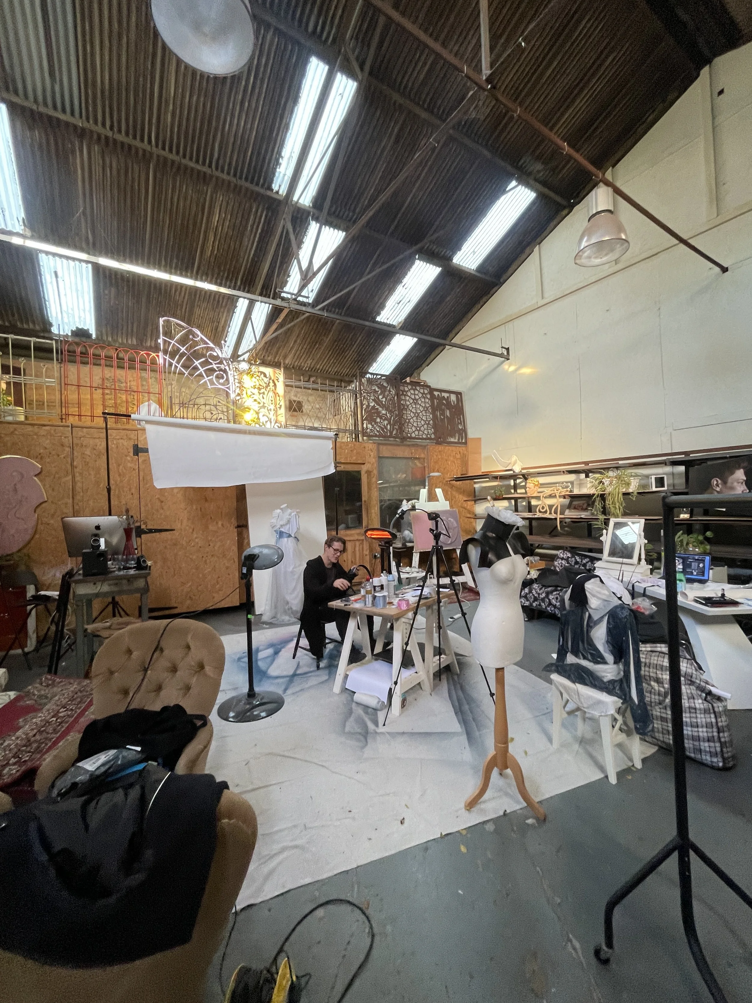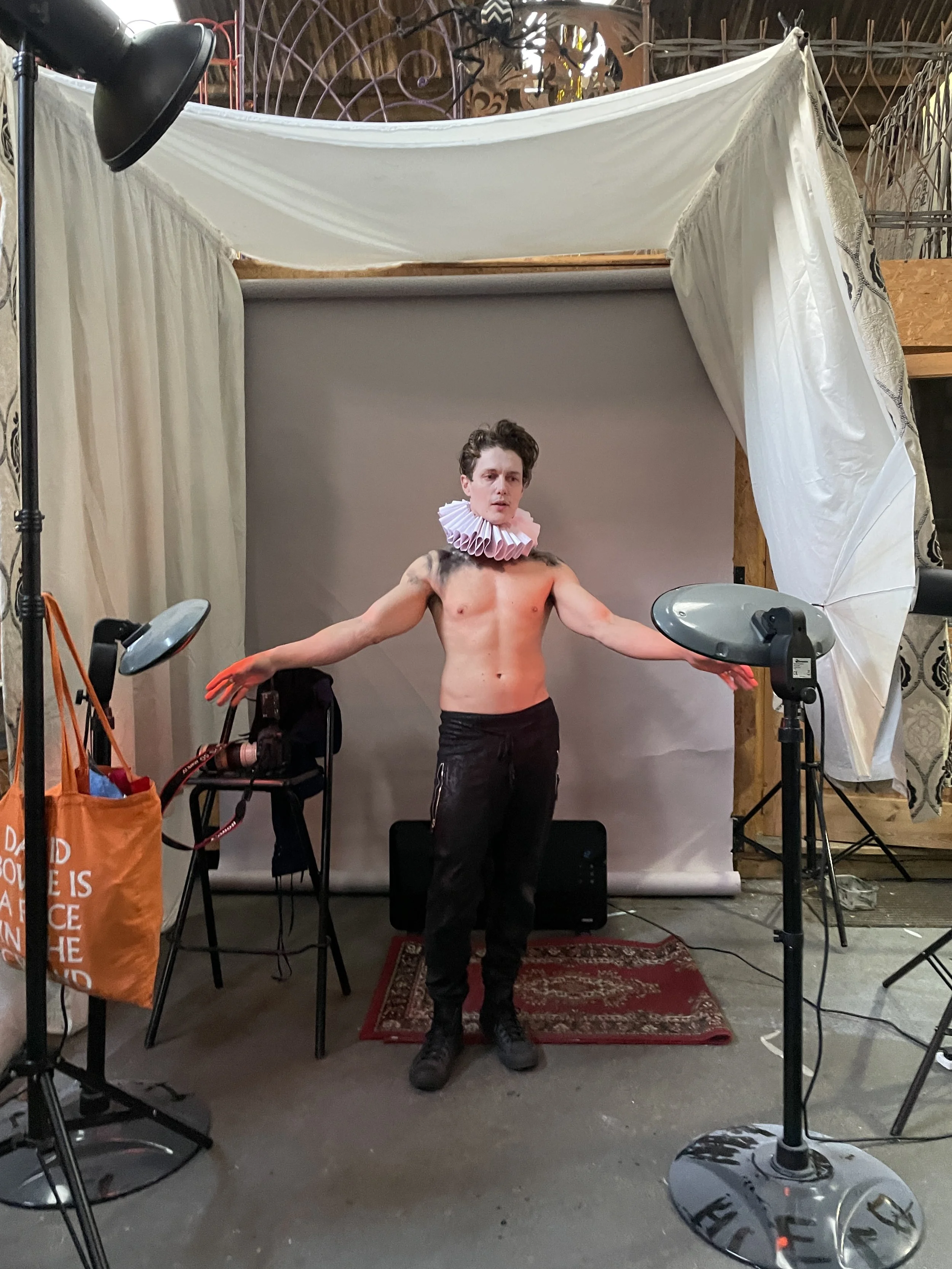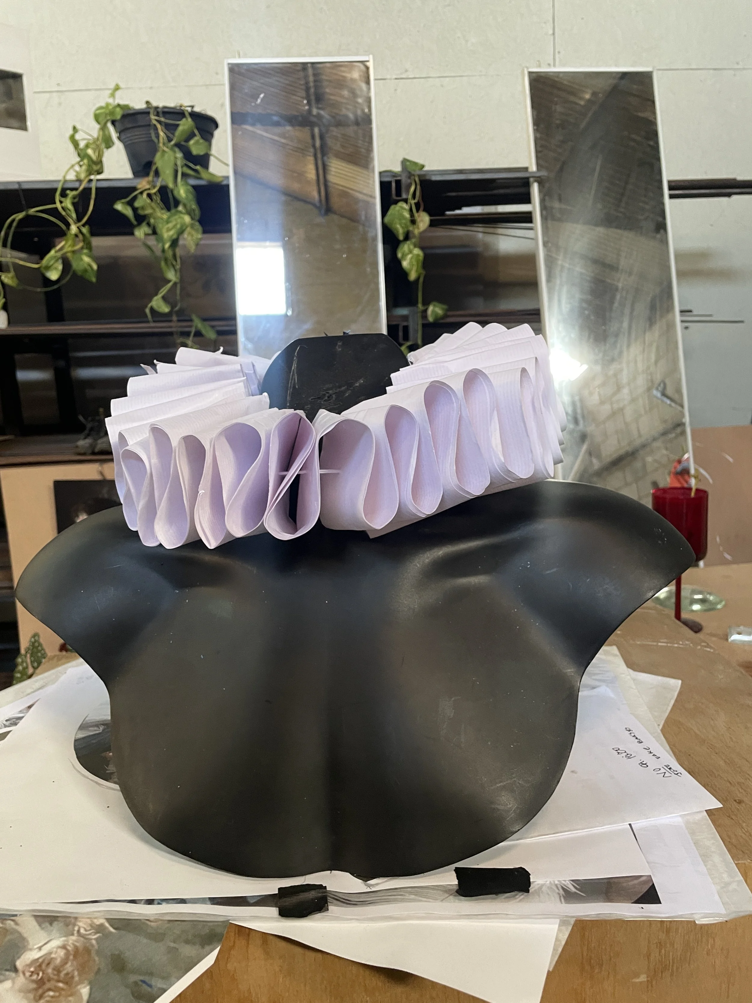 The costumes are all made by me out of one thing or another, often plastic sheeting or paper. I’ve also incorporated a custom leather shoulderpiece by extraordinary leatheress Rachel Freire.
